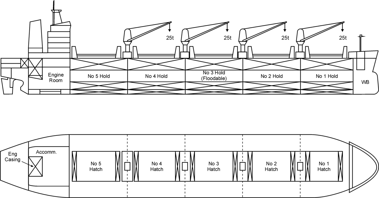 Ubicación del cuarto de máquinas en un cargueroEspacio destinado al alojamiento de la planta motriz, generadores, calderas, compresores, bombas de lubricación, lastre y todo dispositivo para el normal funcionamiento de un buque. Cuenta con varios compartimentos, talleres y pañoles y un cuarto de control climatizado y aislado del intenso ruido.